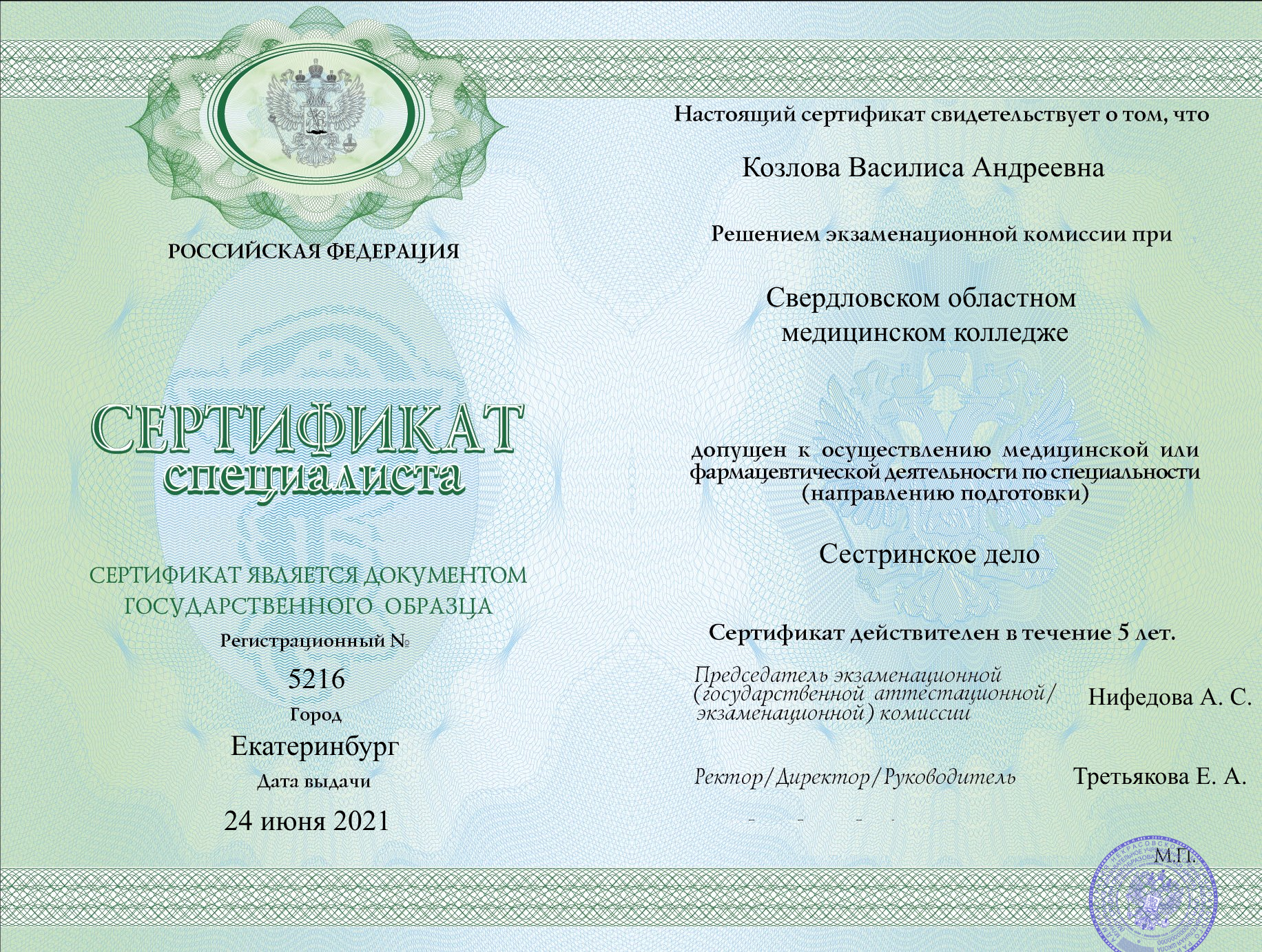 Специализация: Медицинская сестра